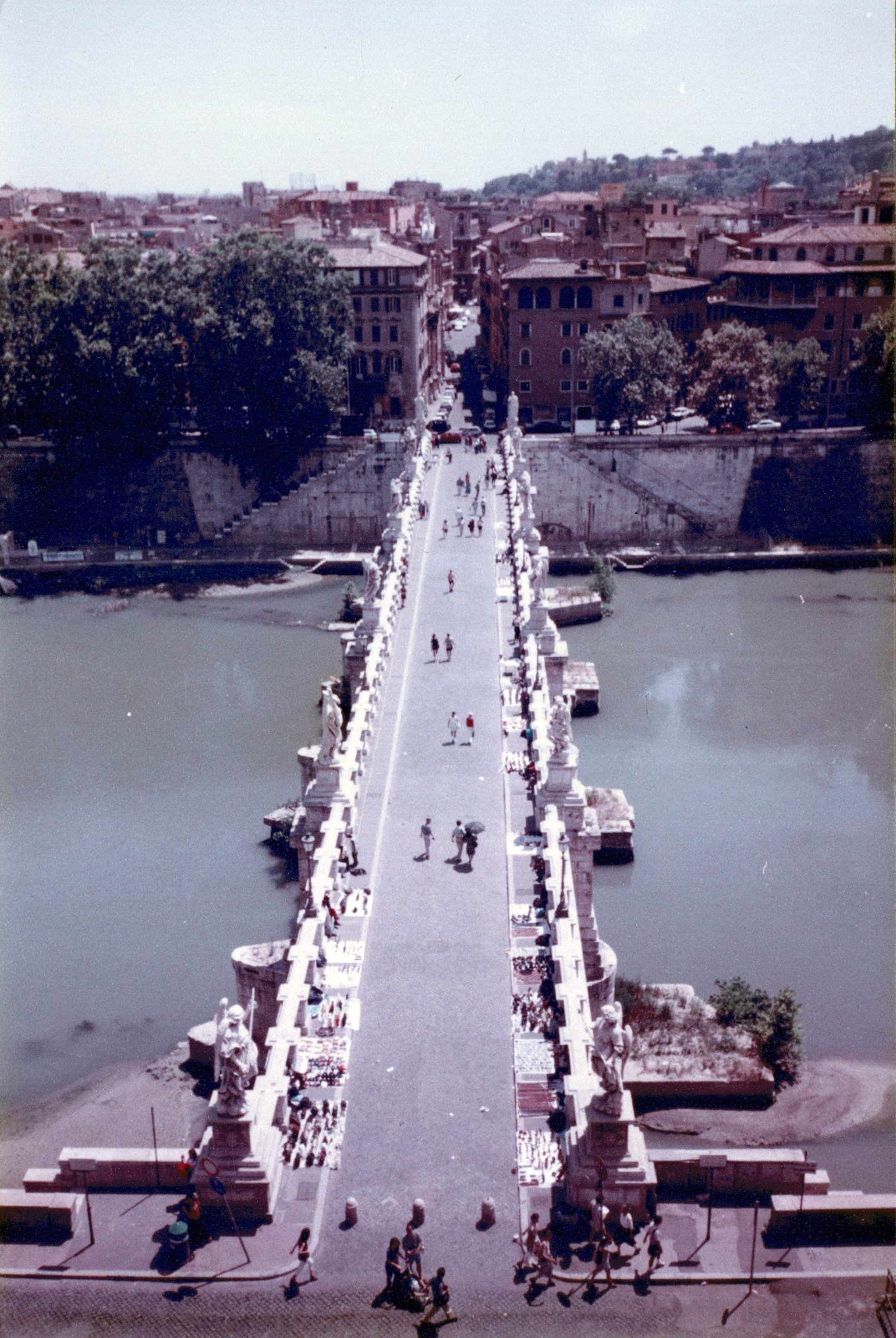 Saw the Palazzo Ducale instead. Not sure it was worth it – a dreary place, huge ill-lit rooms, enormous wall-to-wall paintings that the poor lighting made pointless. After peering around, I gave the armory a cursory look – it was well lit, at least. And then the highlight of the tour: the Ponte dei Sospiri – the Bridge of Sighs – the covered bridge through which prisoners were brought in from the dungeons for inquisition. Done with sight seeing, I picked up my luggage and left for Rome.