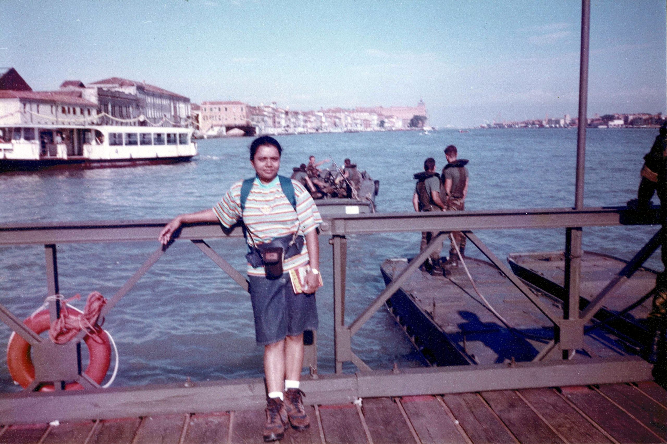 I was still mostly in my own company. That was good as long as daylight lasted — after dark, a low-grade tension set in: getting home in Venice meant navigating vaporettos with their unpredictable timings. Two exceptions to the solitude: a couple of guys from Gujarat, London, who turned up at the hostel; and a Japanese girl on one of the boats. Brief acquaintances, all of them.