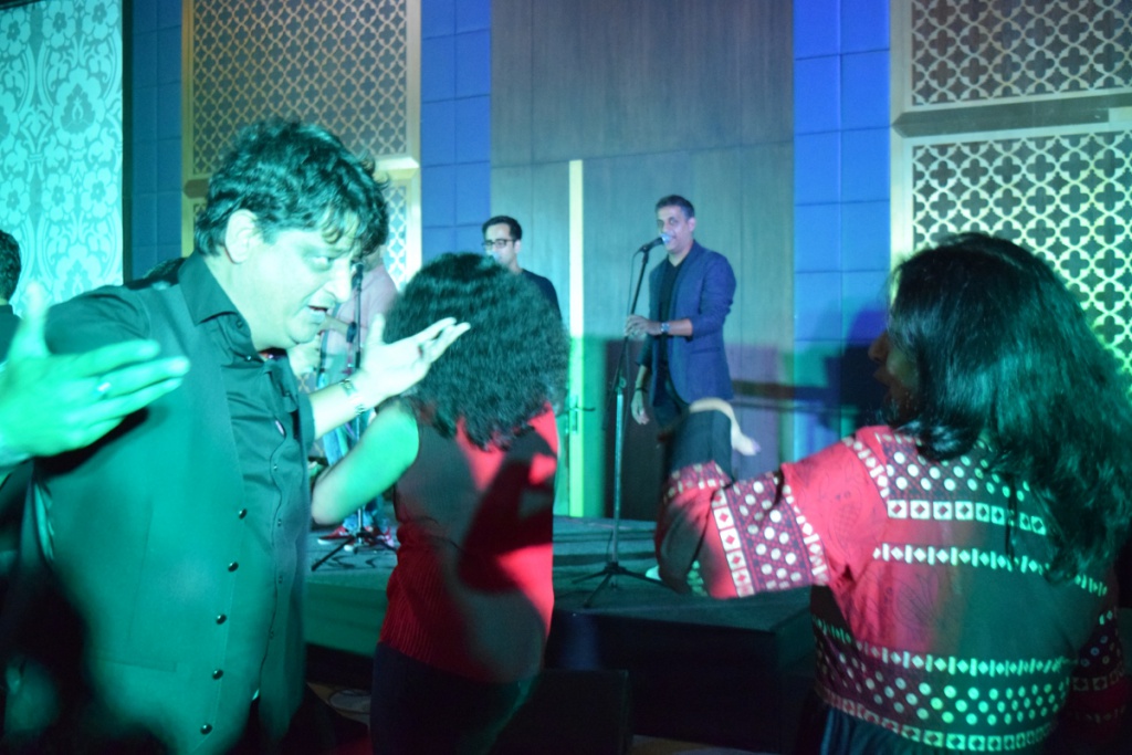 The night is a bit chilly. We walk to our room and get some warm layers. It’s a full moon night, or nearly full moon. I try to capture the beauty on my camera – with limited success. We hurry back to the events – by this time, the live music is in full swing, and we join the dancers warming up the dance floor. Soon the dance floor is crowded. We wish for old monk – and magically old monk appears! I hear that Ruchika and PG are our gracious providers. Not sure whose, but Priya and I take occasional sips out of a couple of cups of old monk with cola doing the rounds. Aaaah that old familiar taste! Vidhya on the other hand, declares that she’s had enough alcohol the previous night (when Priya and I were not yet there!) – I see that we have to postpone our pre-agreed let’s get sloshed together moment. Ah well – there are 2 more nights, we’ll see!