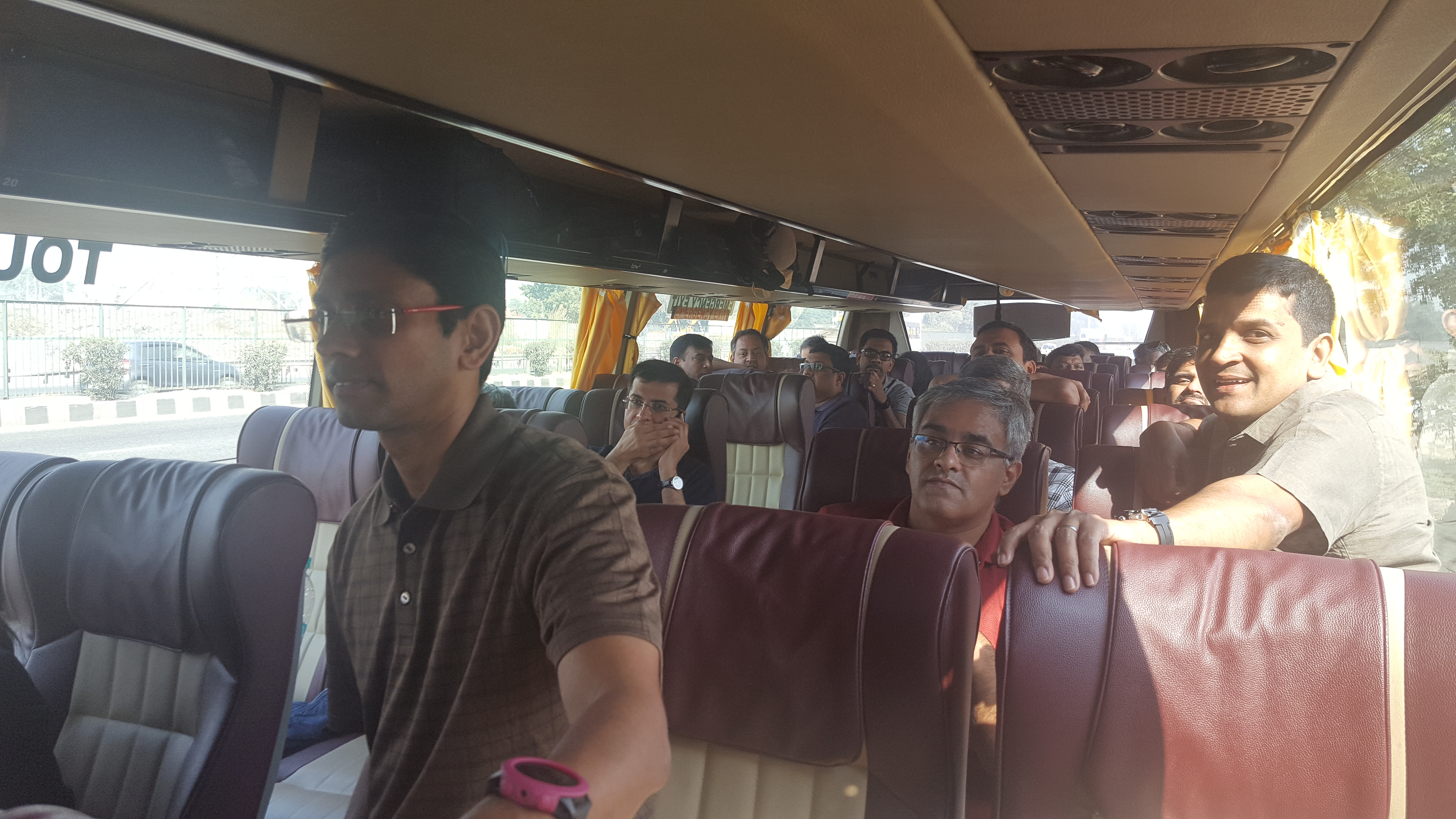 Eventually, closer to 11 than 10 am, we are in the bus, starting out for Pilani… for the… 8th time for me! No Rajasthan roadways this time, no ISBT. AC bus right from the resort – luxury befitting our age 😉 The initial part of the ride is quiet. I go in and out of dozing and Priya is closer to a zombie state. I recall some sweet-sour ginger sweets that Vidhya passes on to us. There are samosas too at some point. I strongly resolve not to aggravate my stomach with samosas – but cave in easily when they are actually passed around. Only a bit of the crispy part, I tell myself. Hmm… not much has changed with my resolutions – just like all those long ago resolutions to stay up late and study… where I’d end up eating maggi at night canteen and promptly fall asleep!
