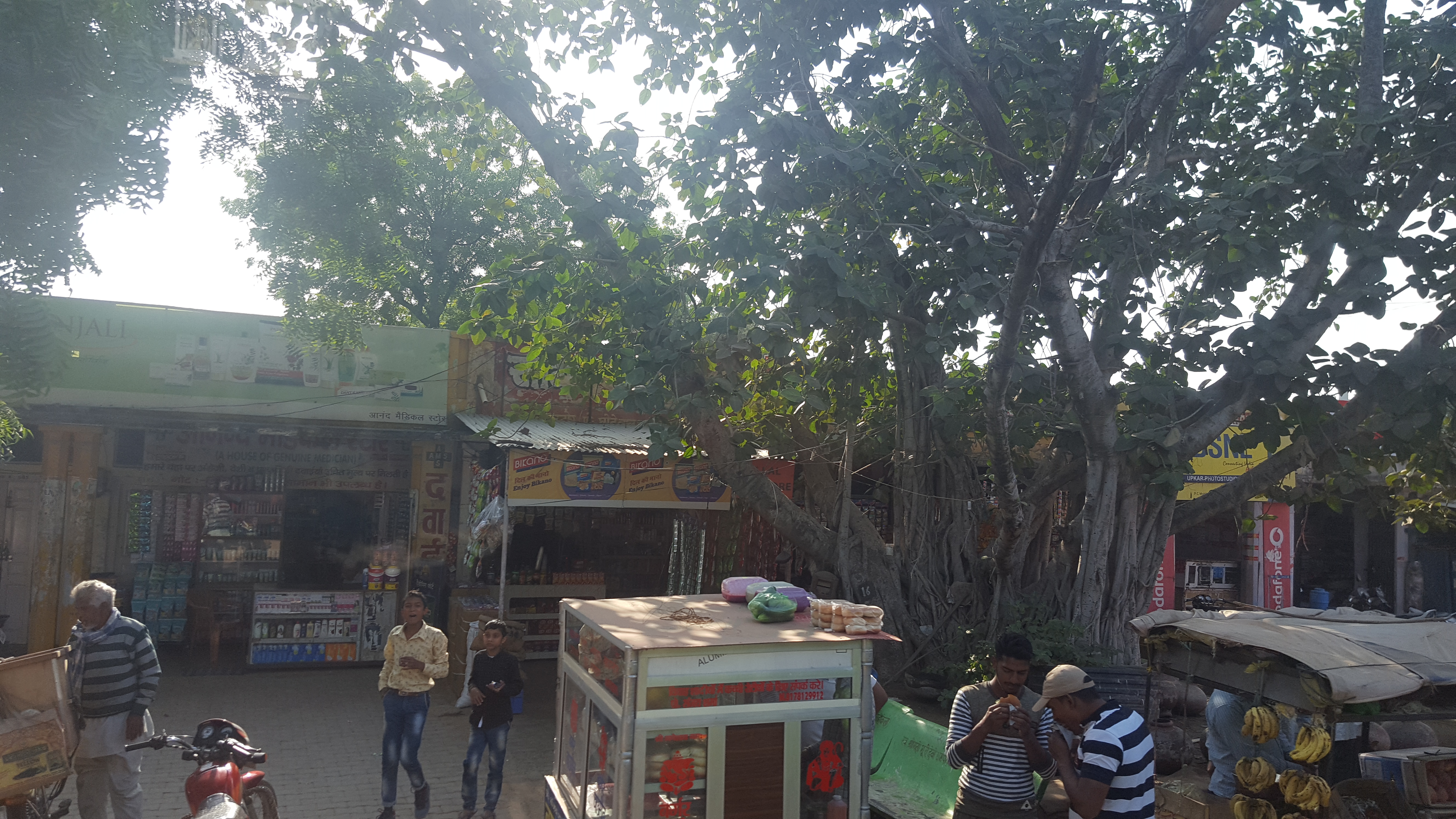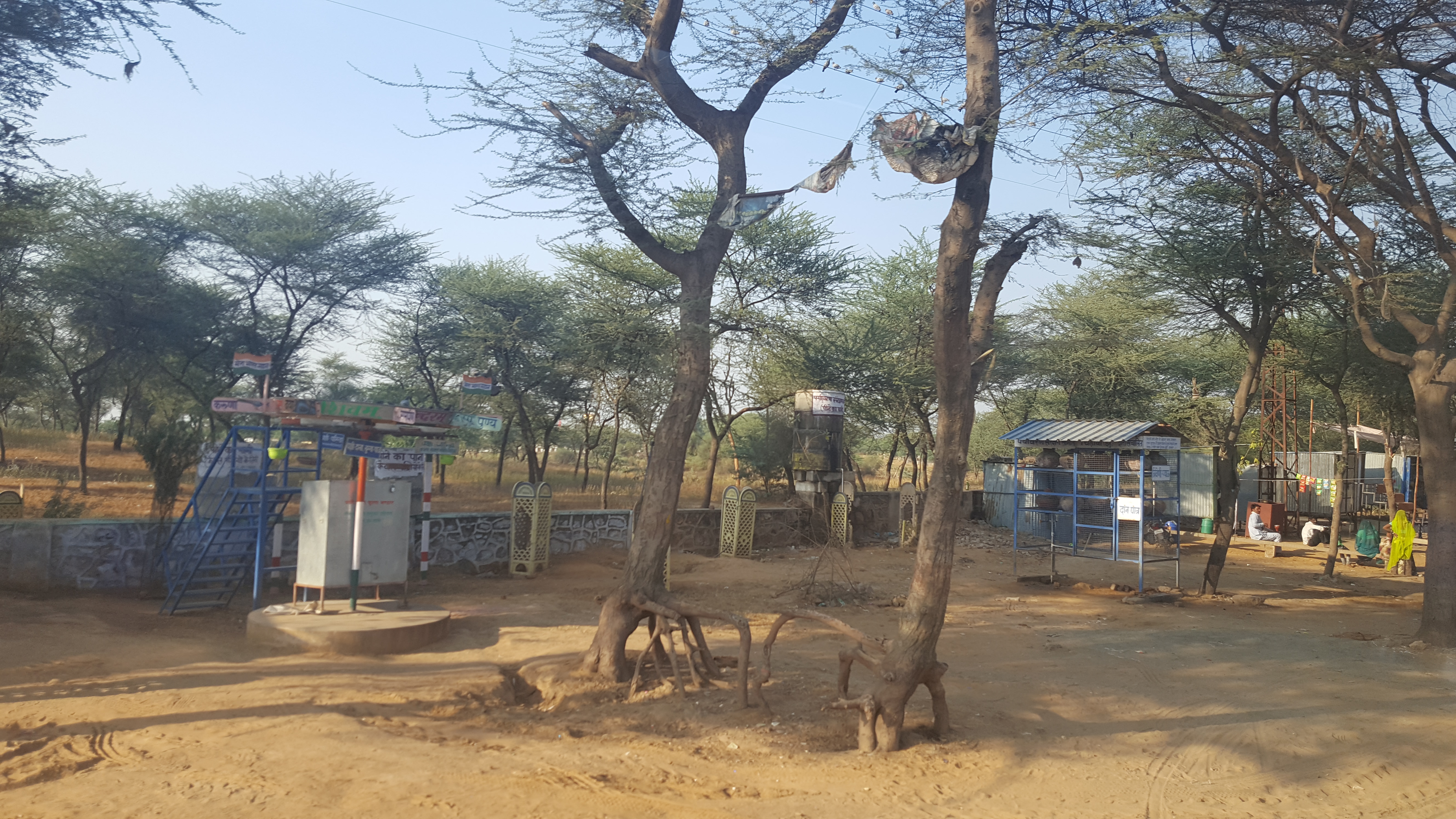 People start singing. I am surprised to find so much talent among us – not sure why I should be surprised, but since I sing so badly myself, it always surprises myself when others hold a tune and are able to make their voices do what they tell them. Ruchi, Sathya, Vidhya to name a few… and Pramod(?) (Not sure of the name…) Anyway, all awesome voices, singing nostalgic songs. The inevitable anthakshari kicks in at some point – I half follow and half doze in contentment. Just happy to be on this bus, sitting next to Priya, going to Pilani! Can you believe it?! We’re going to Pilani!!!! As I click away with my phone, I feel like I can’t have enough of those sunny dusty road side scenes.