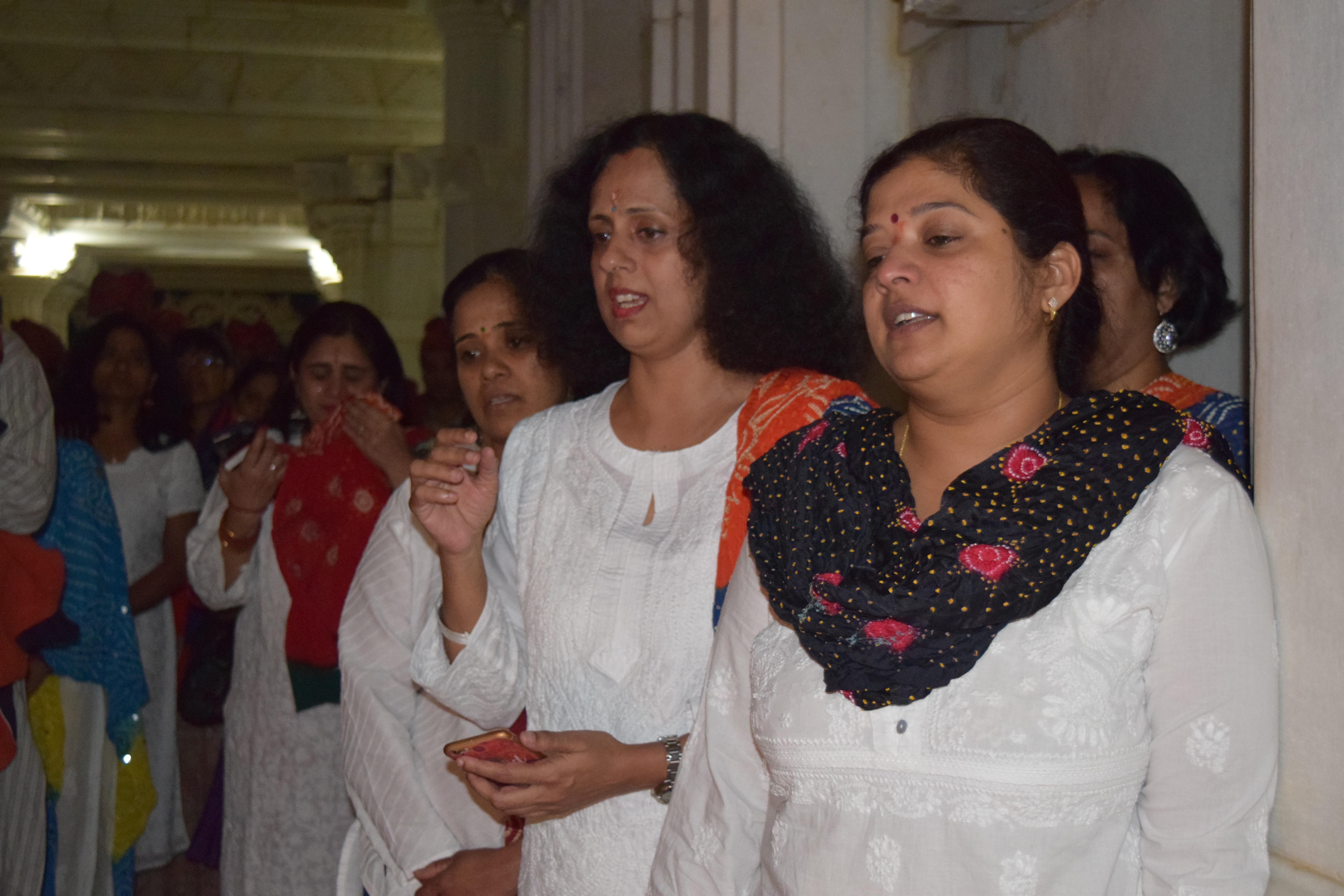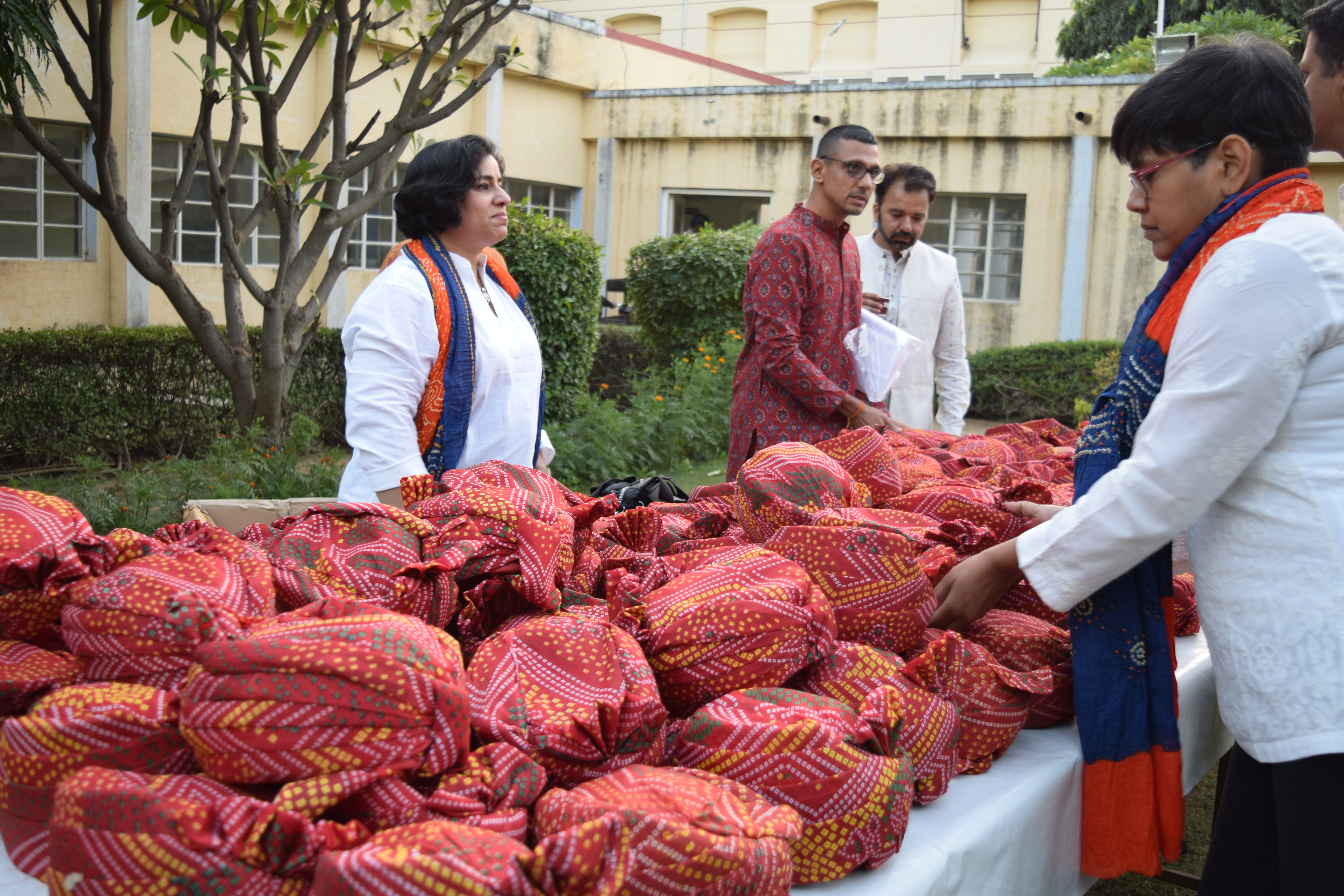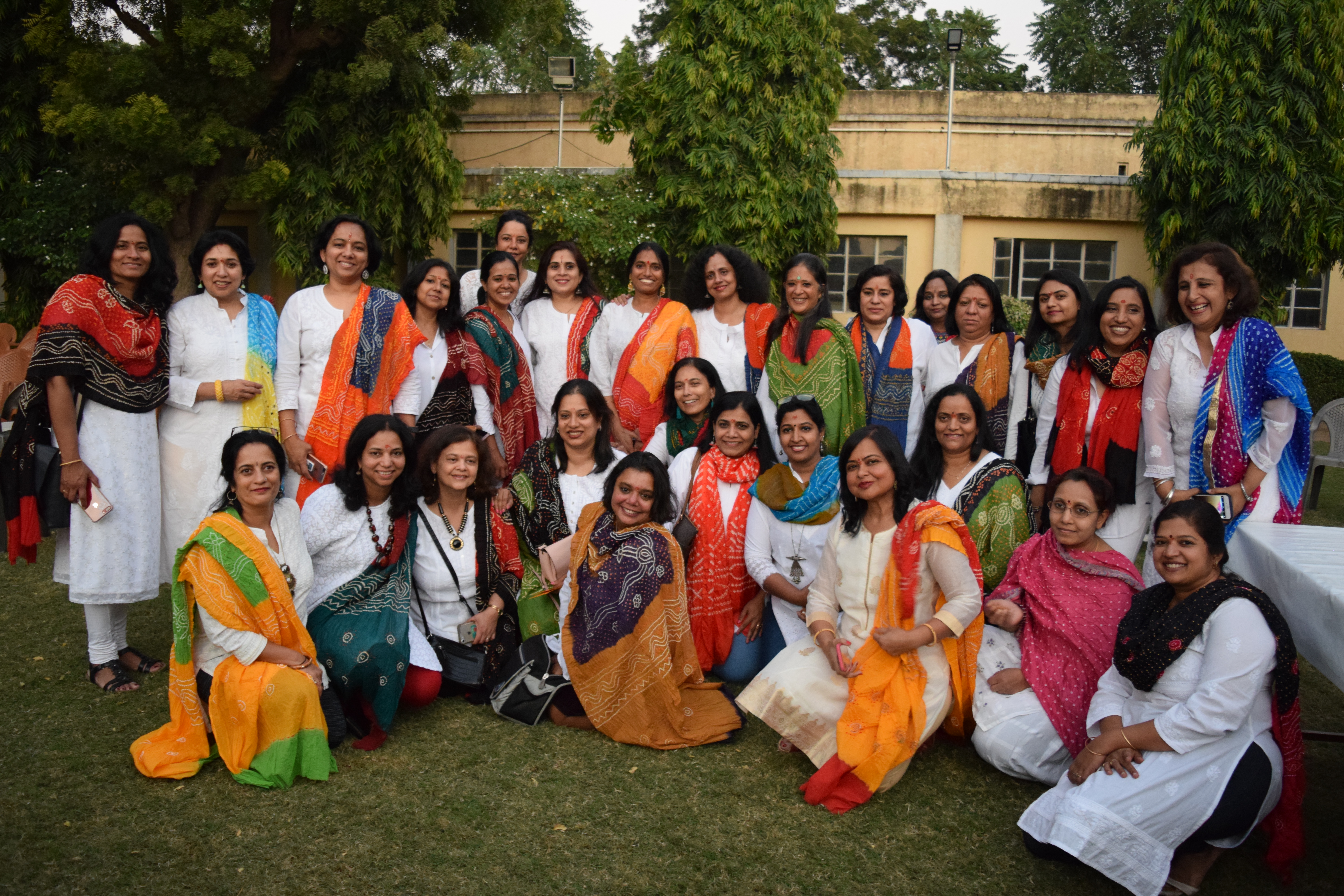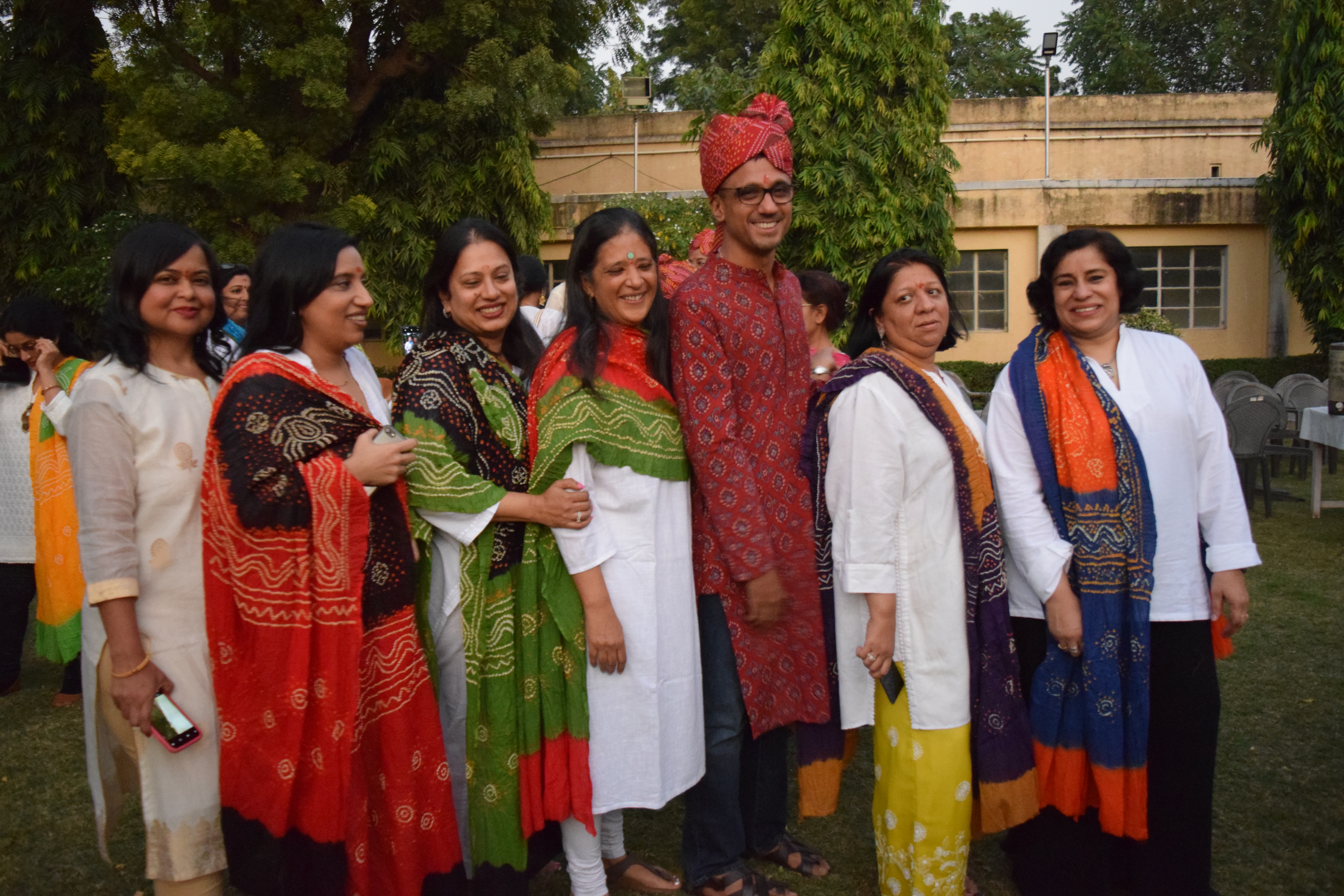 Soon it’s time for the next activity: I only know that we are supposed to wear white outfits with bandhni dupattas for this. It’s beautiful to see all the girls take their dupattas and customize the outfit to match: some wear their dupattas traditionally with salwar kurtas; others, with pants or skirts, white shirts, the dupatta wound loosely over. Everyone looks gorgeous in their designer styles. Unfailingly, as soon as we land in Rajasthan, the colors somehow seem to come to life!