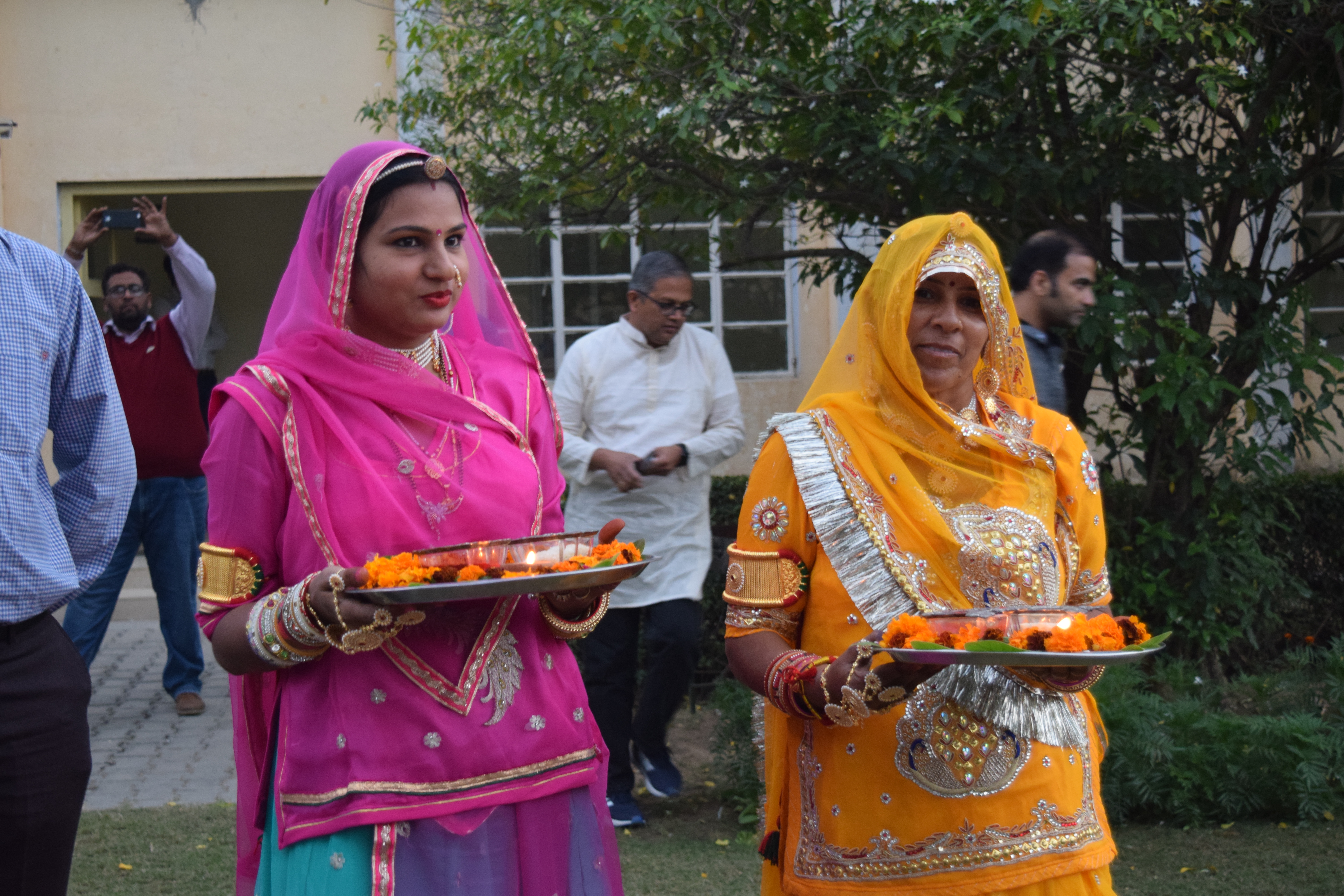 Tables are setup with diyas, ready to be lit. There is an air of anticipation and childlike excitement to be dressed up and awaiting what’s coming next. KD gives a short intro speech: “When we came to Pilani for the first time 29 years ago, we didn’t get a traditional welcome. No matter, we shall have individual welcomes complete with aarti now!” A big hand for the organizers! We line up solemnly in front of two Rajasthani local women, who perform our aartis two by two. So beautiful and peaceful – that evening is etched in my memory so clearly.