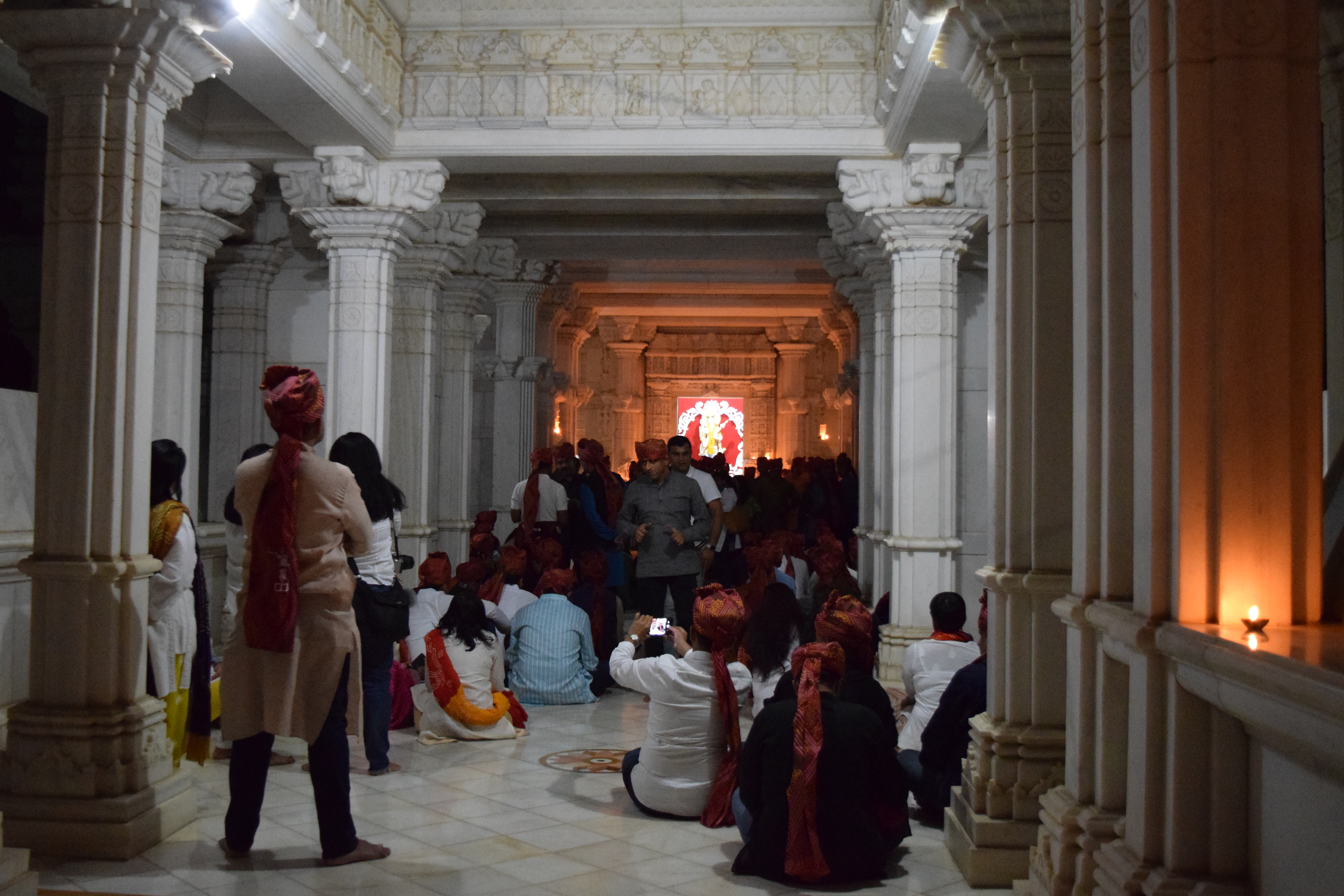 We reach the temple. By now it’s dark. I don’t remember the exact moment when the diyas are lit. But suddenly, like 200 fireflies the diyas are shining in the dark. After some group photos at the steps of the temple, we head inside. The mood is solemn, everyone seems lost in their own thoughts. Our time inside the temple is emotionally charged and overwhelming for many of us …