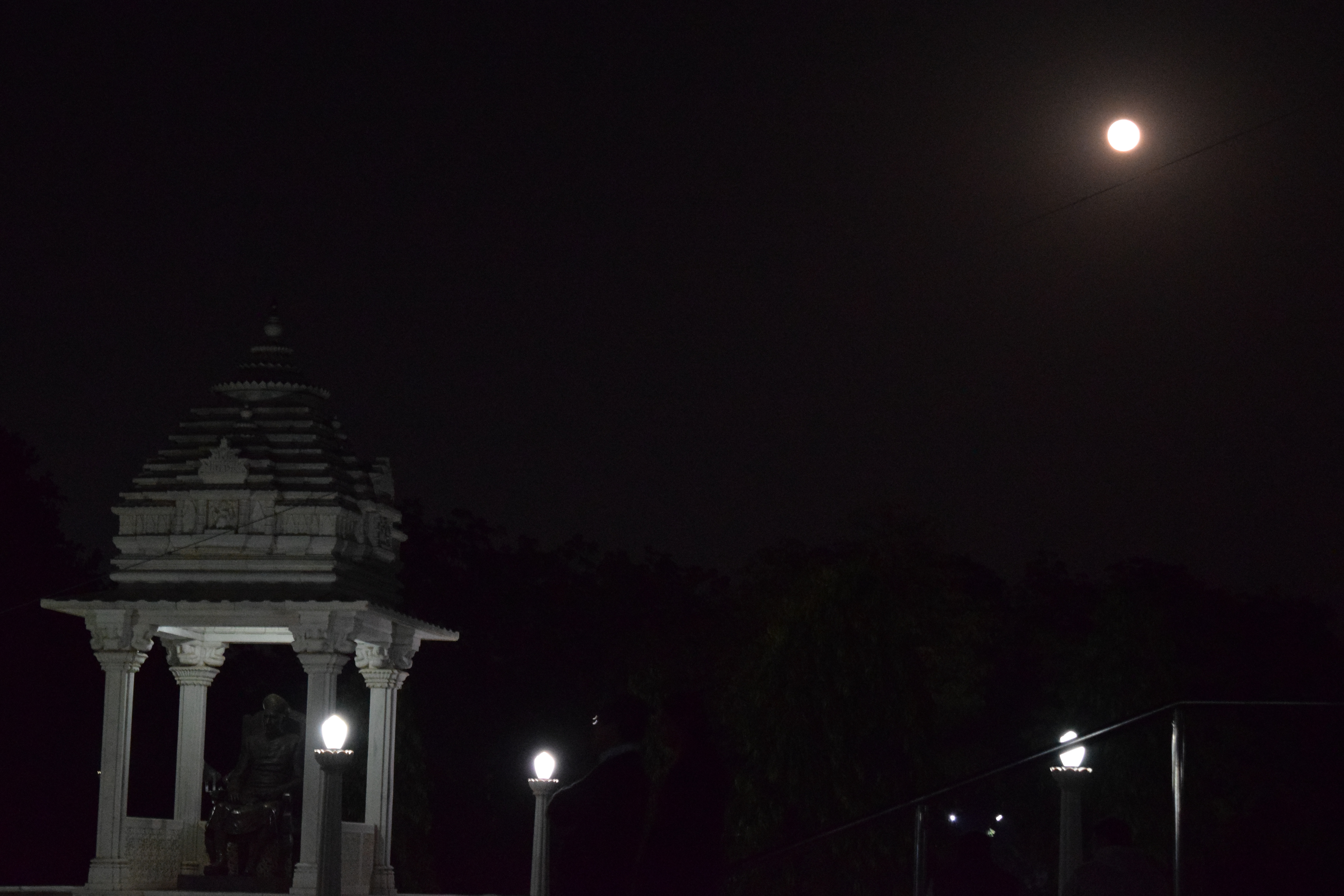 The priest is waiting patiently for all of us to pass by and place our diyas. Then he performs the evening aarti. Not being religious myself, I don’t recall ever attending aarti while at BITS, though I have been to the mandir countless times. And now, seeing the devotion and being part of this group for this special evening aarti is indeed a special experience. After the aarti, some of the girls spontaneously start singing bhajans. They sound lovely, divine almost. No accompanying instruments, just their voices sounding sweet and clear. I happen to glance out from the temple, and to the east see the rising full moon. It completes the perfection of that evening.