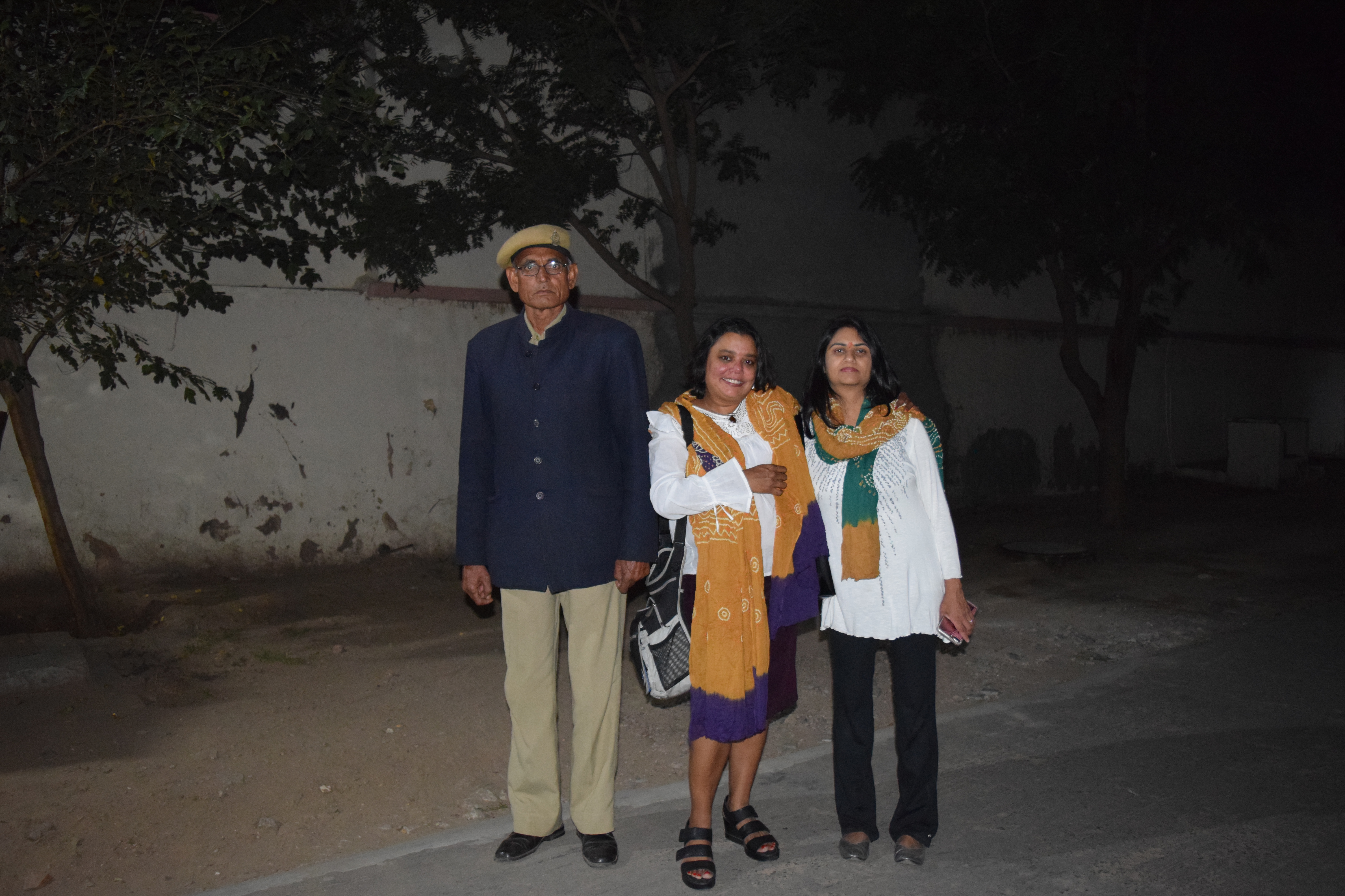 The chowkidar outside MB greets us warmly. He claims to recognize us – we take a photo with him, just in case. The chowkidar, the high walls, and barbed wire – not much has changed in some ways. What has changed is the styles of the cycles – sportier and more modern than in our day. But if you let it stand for a few days, the desert dust covers it all, same as it used to. Thankfully – dust, the equalizer!