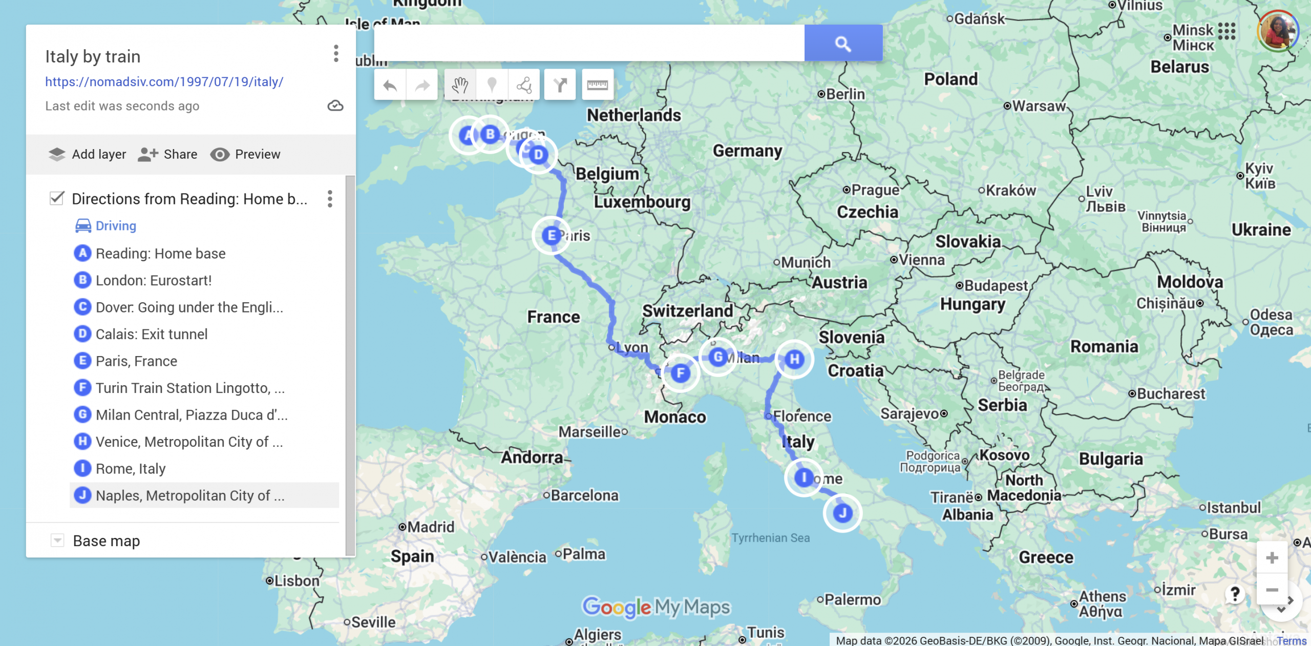 Itinerary on google maps created in 2026 – back when I travelled, there was no google maps of course 🙂