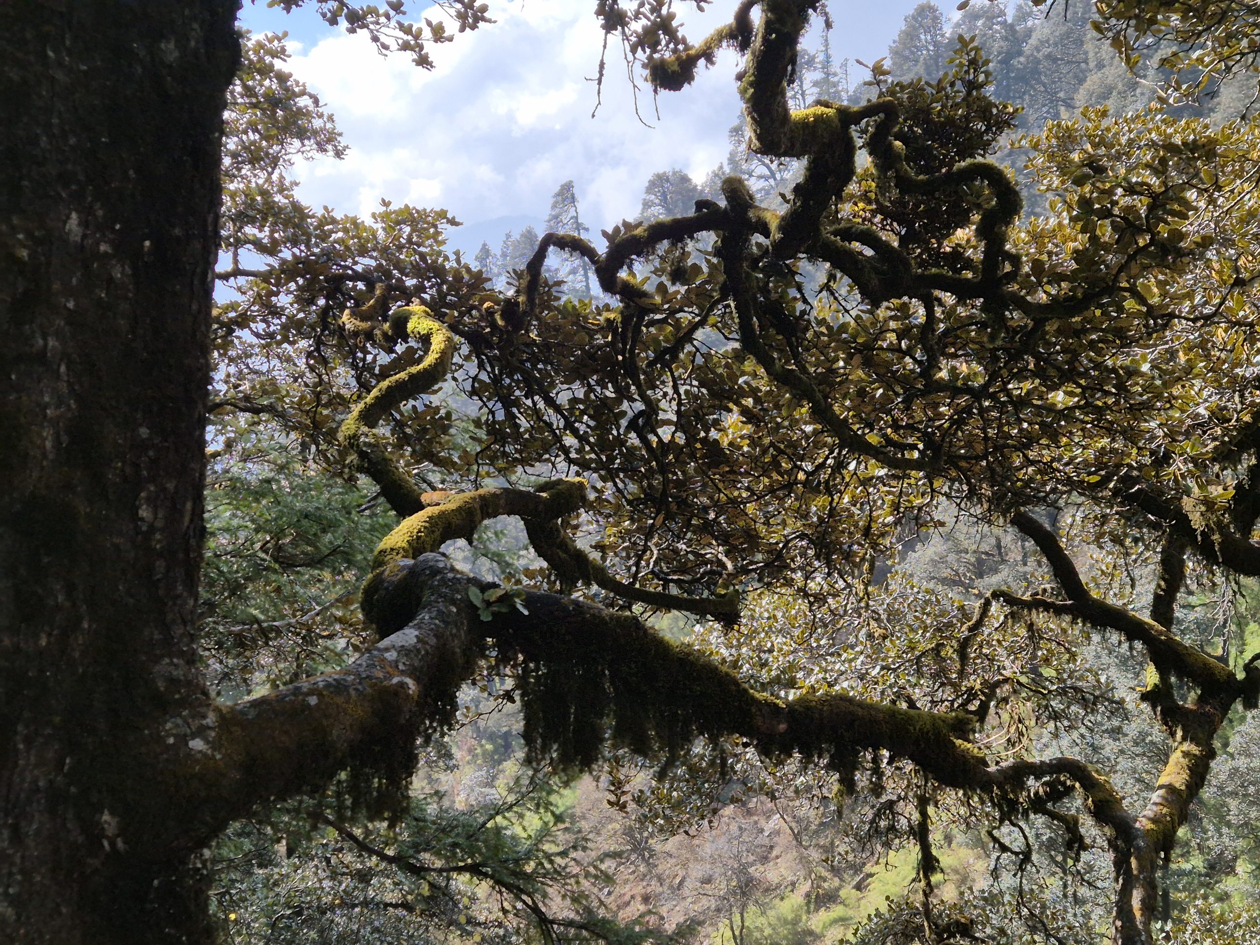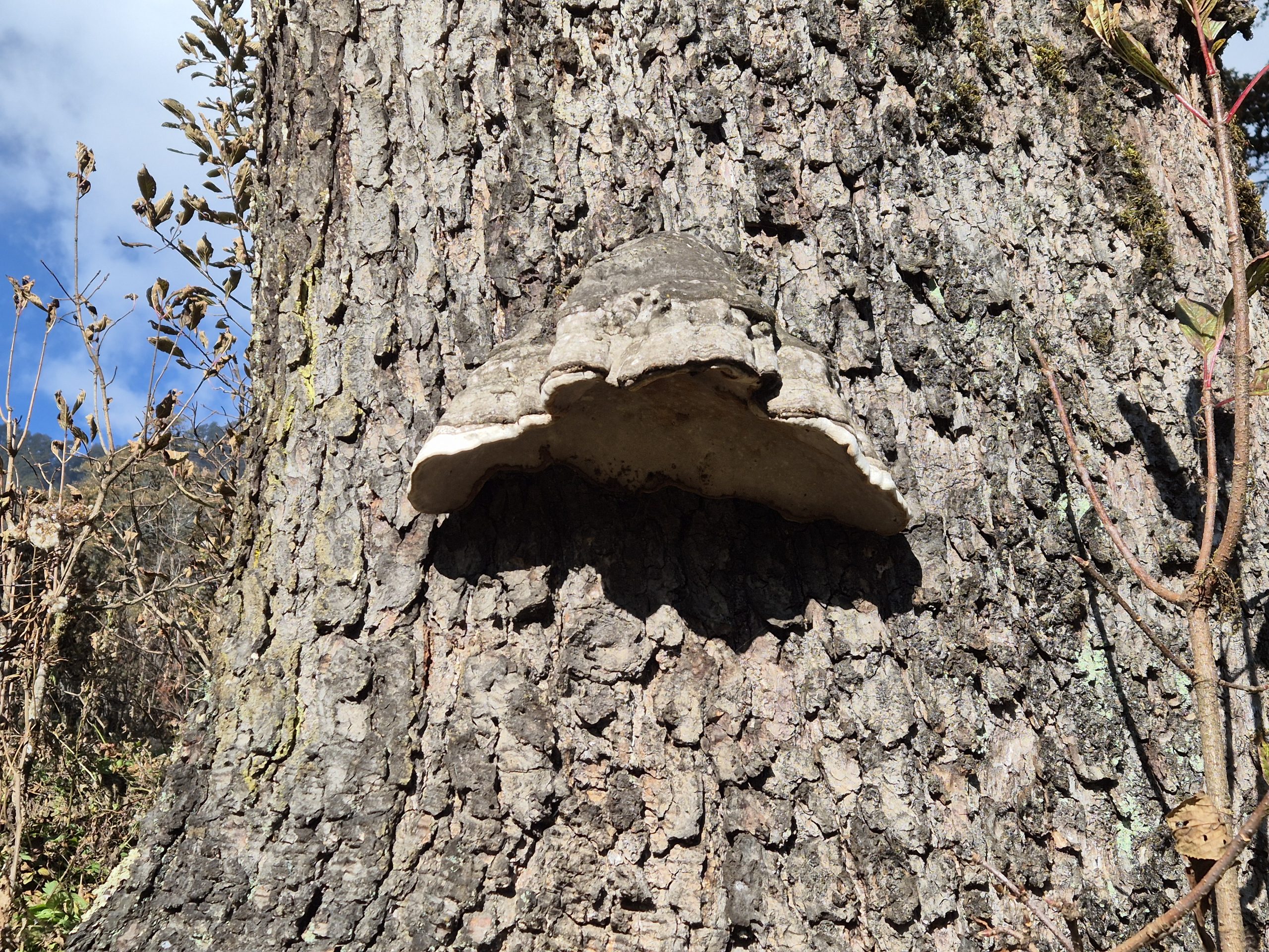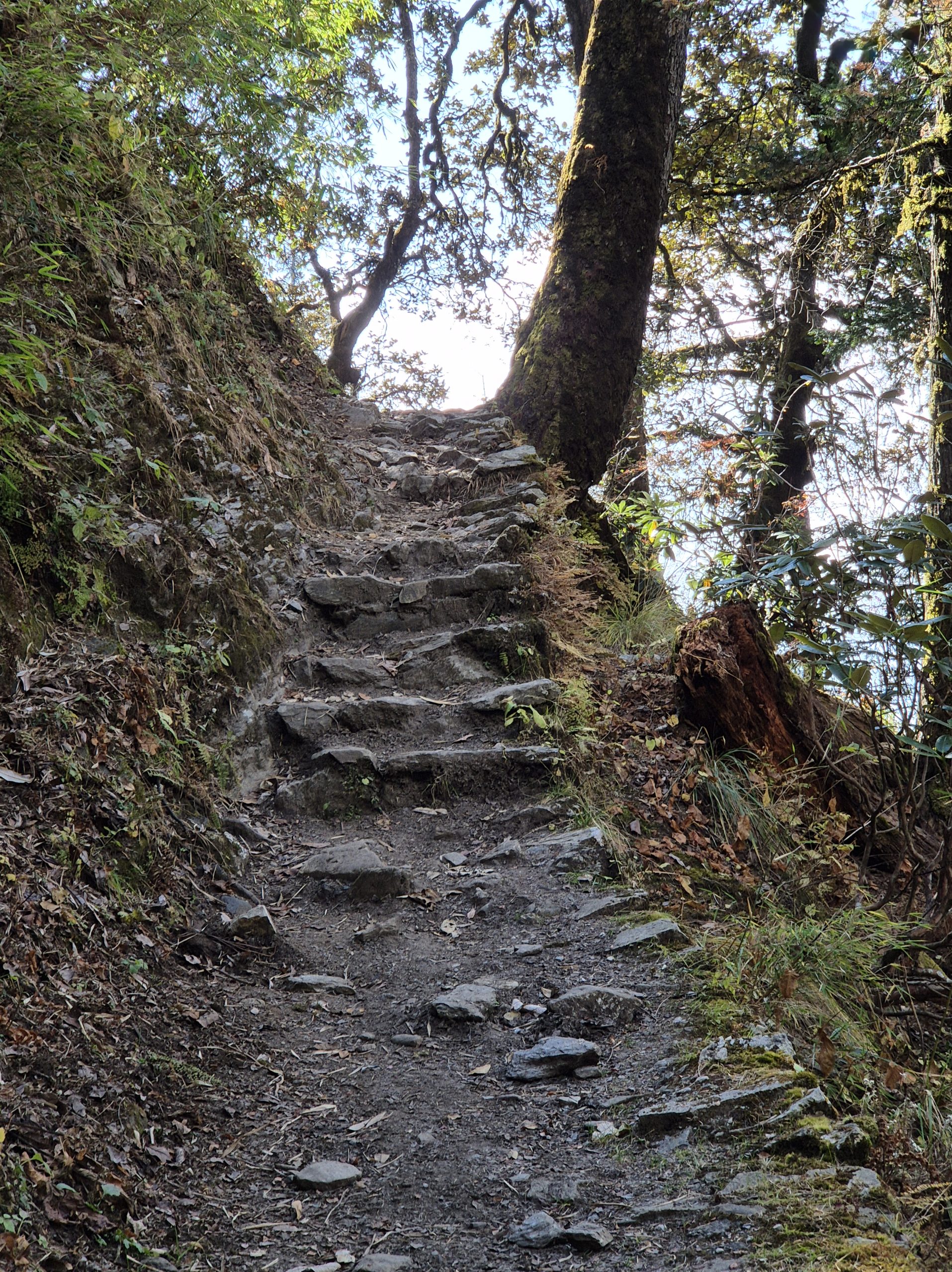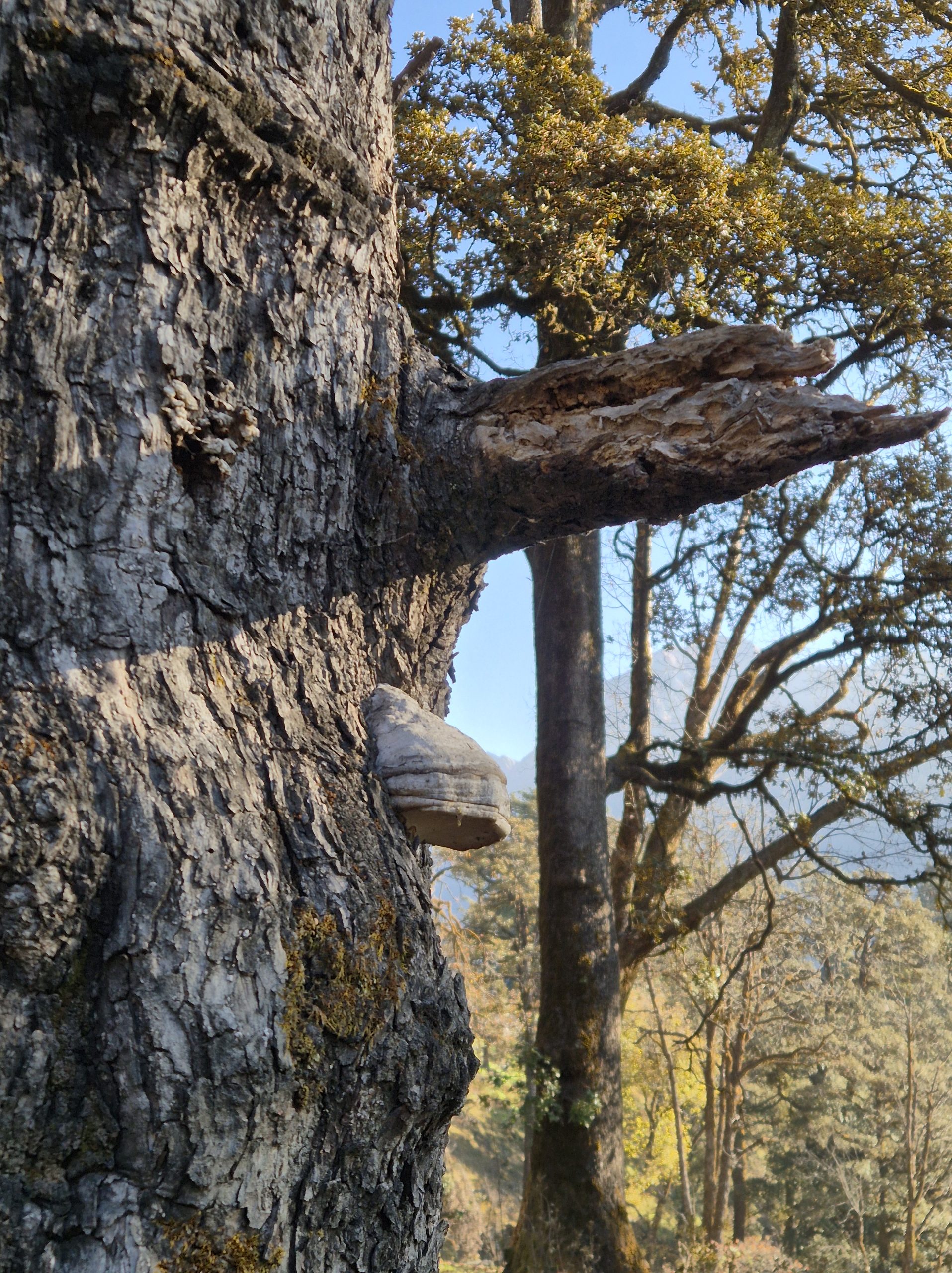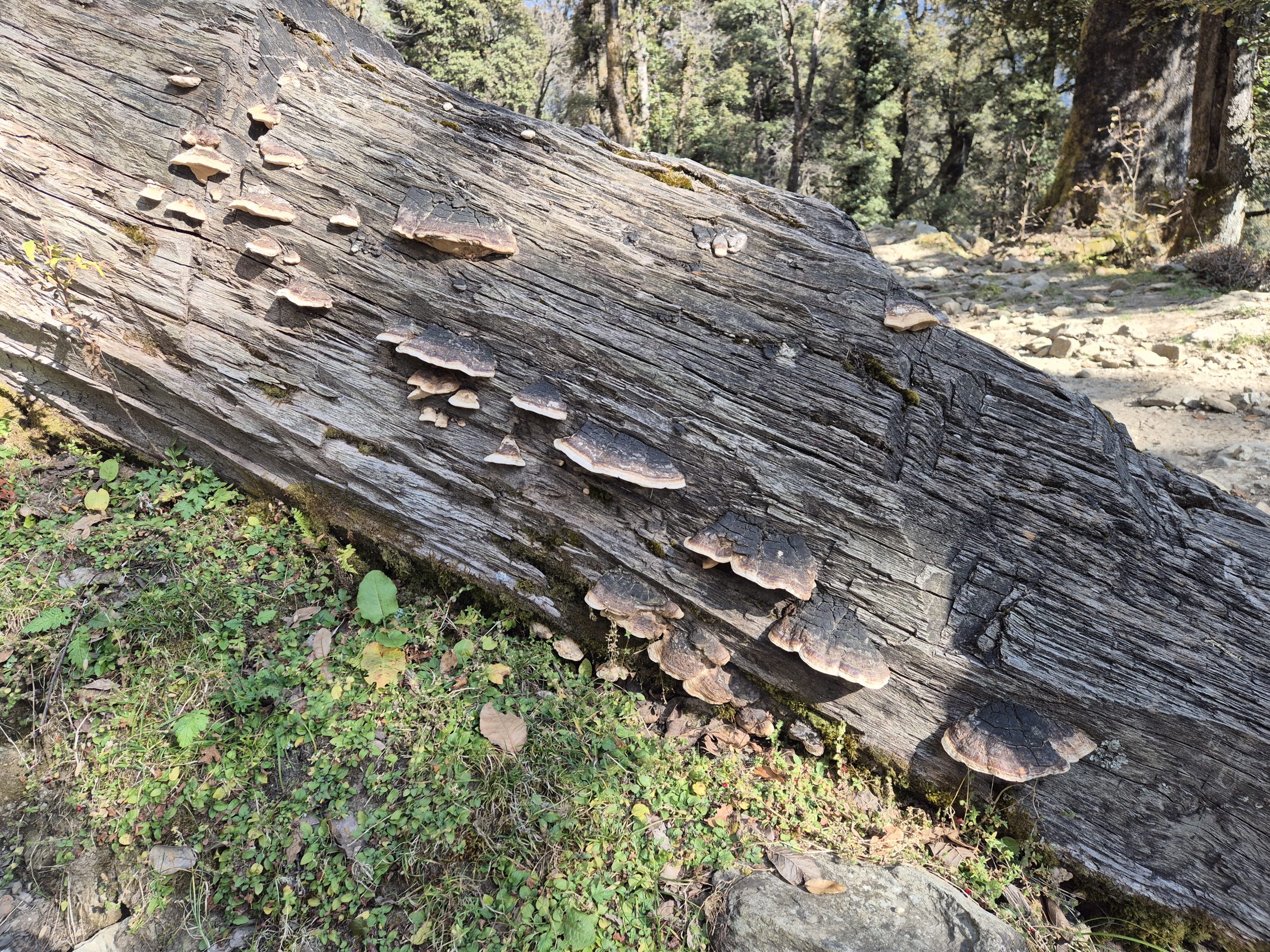 An easy day with a small ascent and only 5 kms to walk. It was the most enjoyable day of the whole trek. I had enough bandwidth to notice and photograph tiny wild flowers. It wasn’t the flowering season, so only a few inconspicuous blooms were around – but there were plenty of lichens and impressive bracket fungi, those woody mushrooms growing on tree trunks. (Ash found an interesting blog post on “How to be like a lichen”, on adaptation strategies humans can learn from them.)