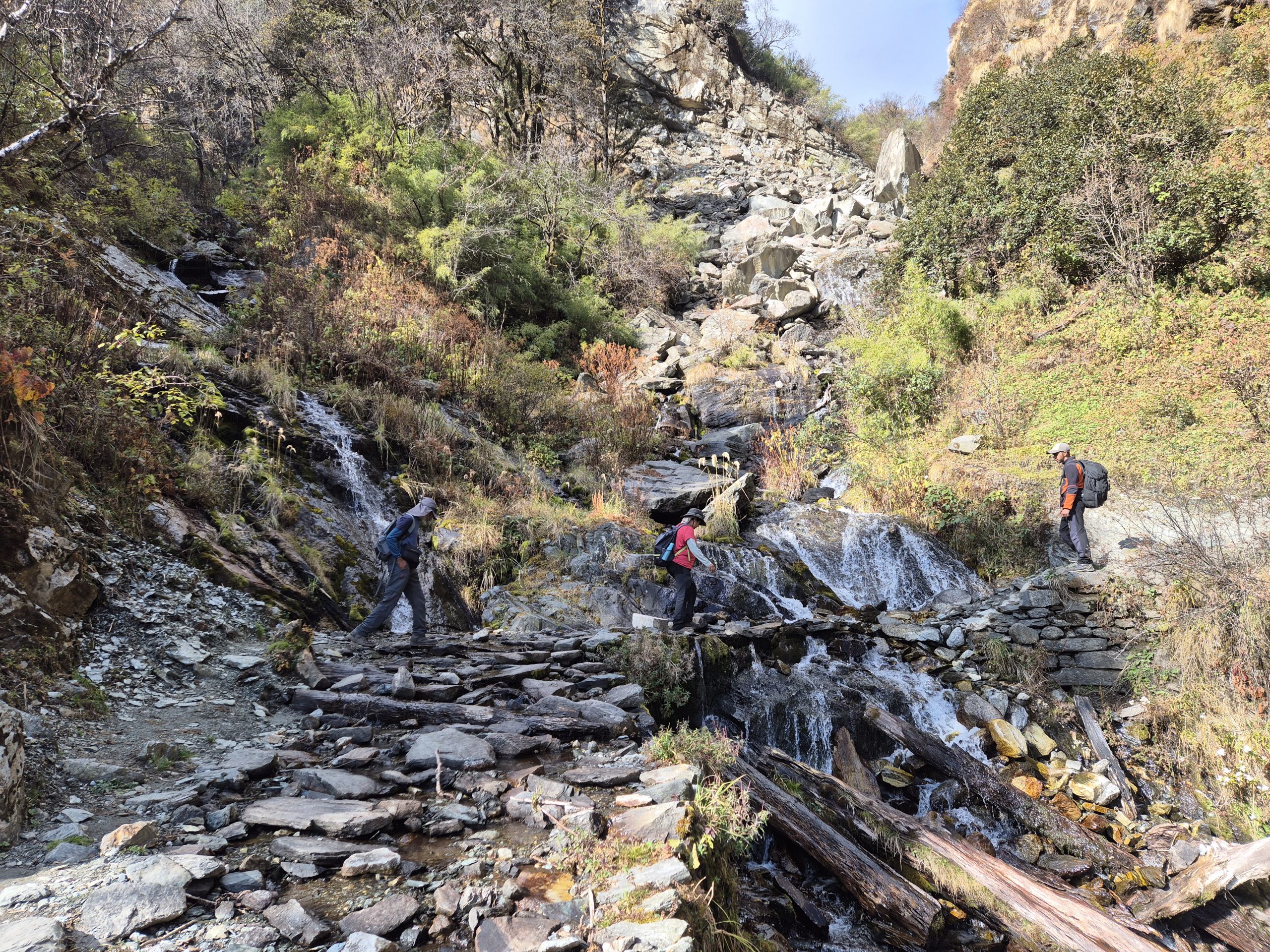 A rusty sign nailed to a nearby tree declared: “Flush toilets are not allowed here.” As if trekkers were carrying flush systems in their backpacks! “Ah, damn! Guess we’ll dig a hole then!”